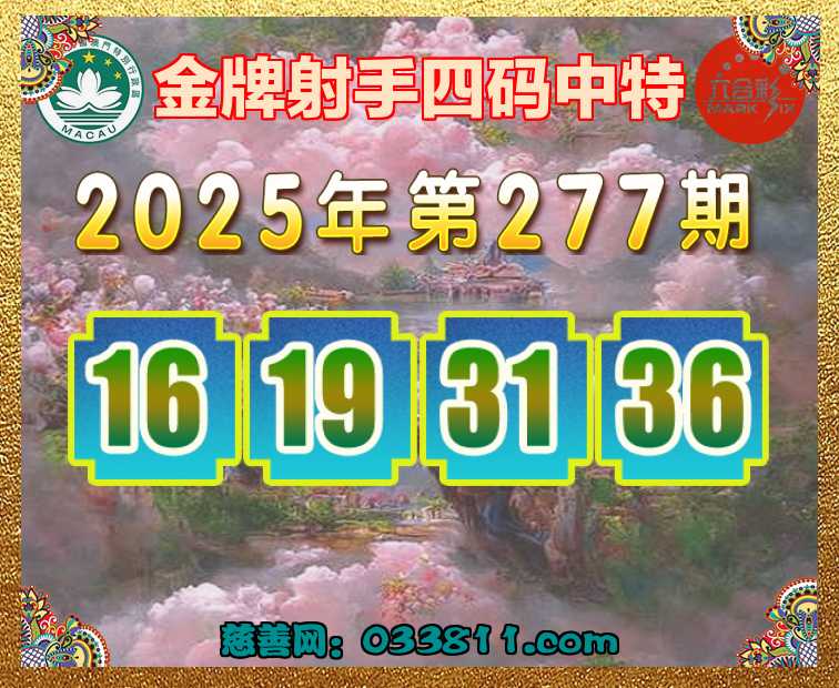 277期:〖金牌射手〗 ✂️四码中特✂️【16.19.31.36】开:16
