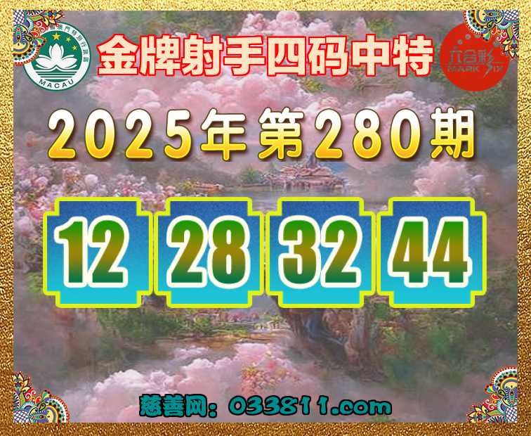 280期:〖金牌射手〗 ✂️四码中特✂️【12.28.32.44】开:42