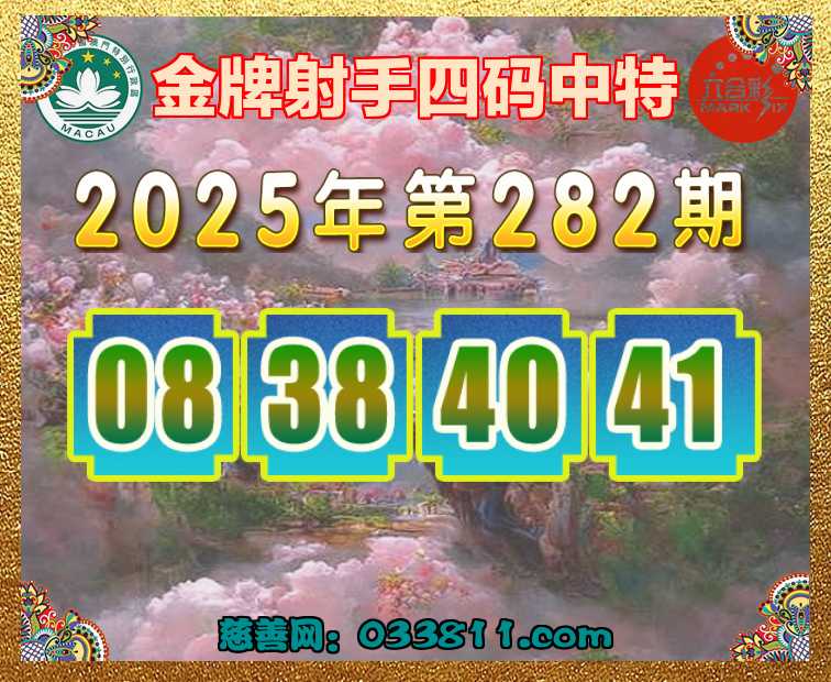 282期:〖金牌射手〗 ✂️四码中特✂️【08.38.40.41】开:41