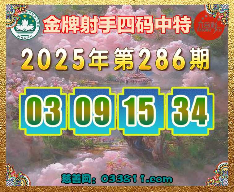 286期:〖金牌射手〗 ✂️四码中特✂️【03.09.15.34+04】开:03