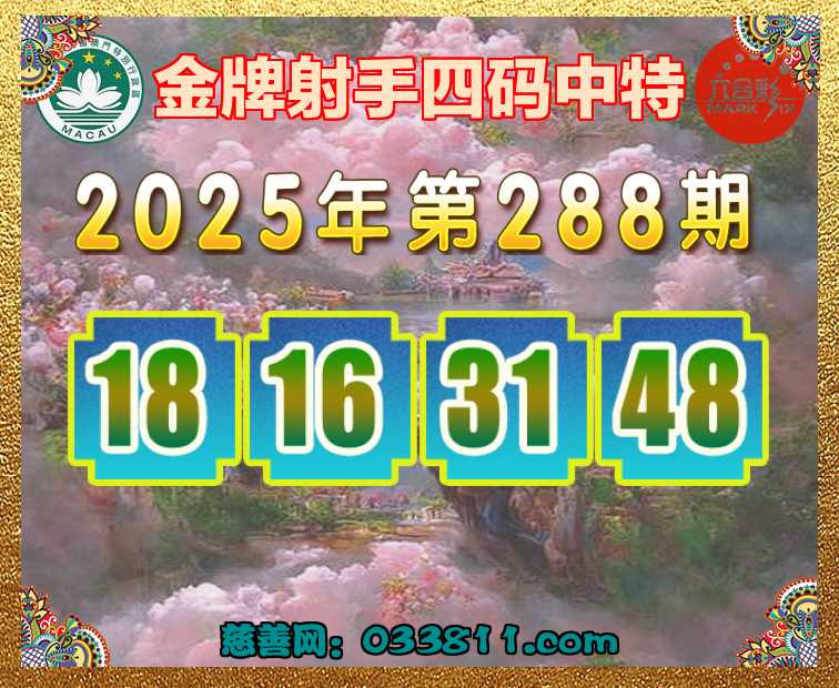 288期:〖金牌射手〗 ✂️四码中特✂️【18.16.31.48+14】开:14