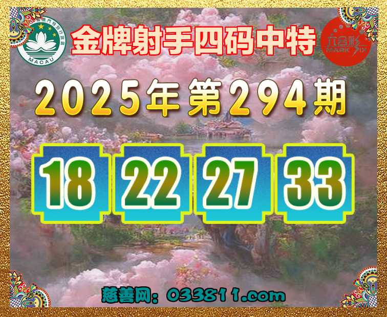294期:〖金牌射手〗 ✂️四码中特✂️【18.22.27.33】开:18